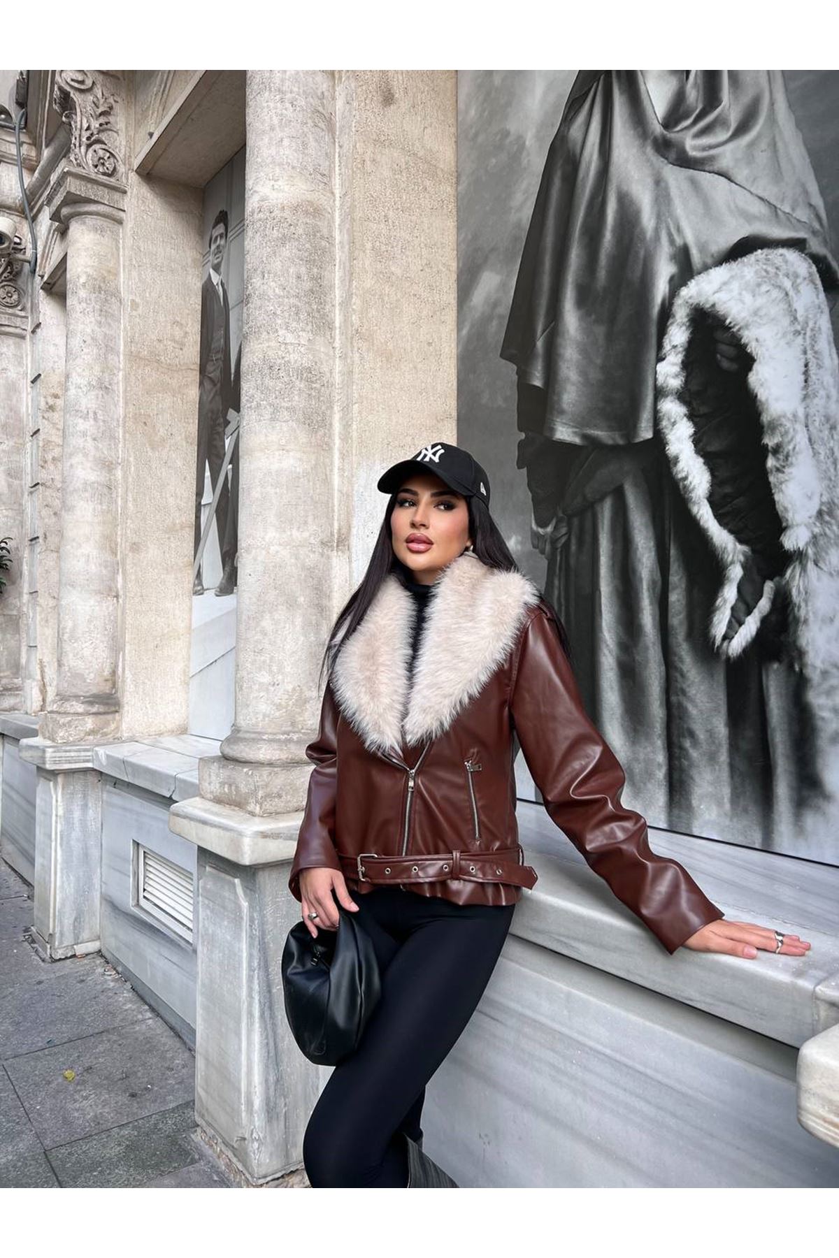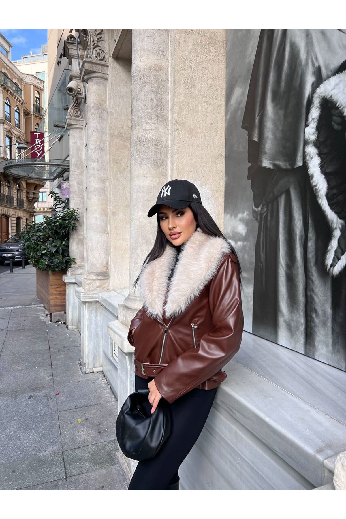 Çıkarılabilir Kürk Yakalı Deri Mont