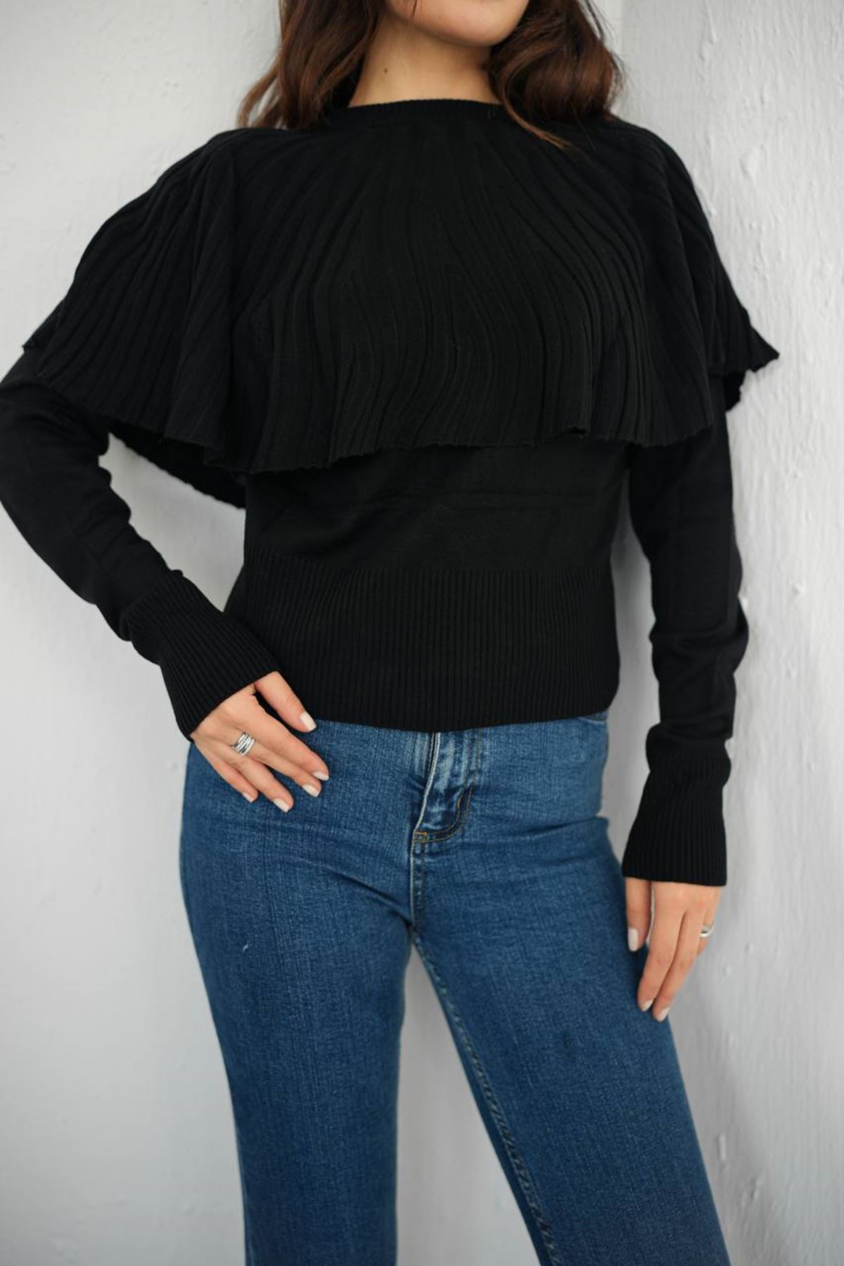 Kadın Volan Katmanlı Şık Triko Bluz