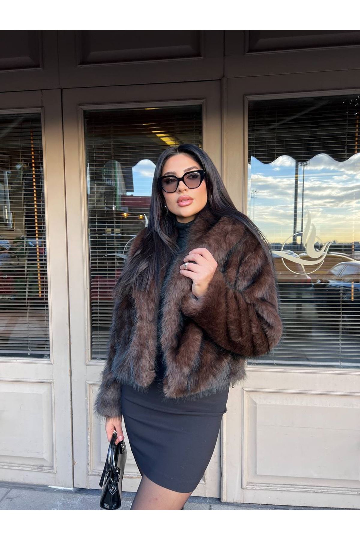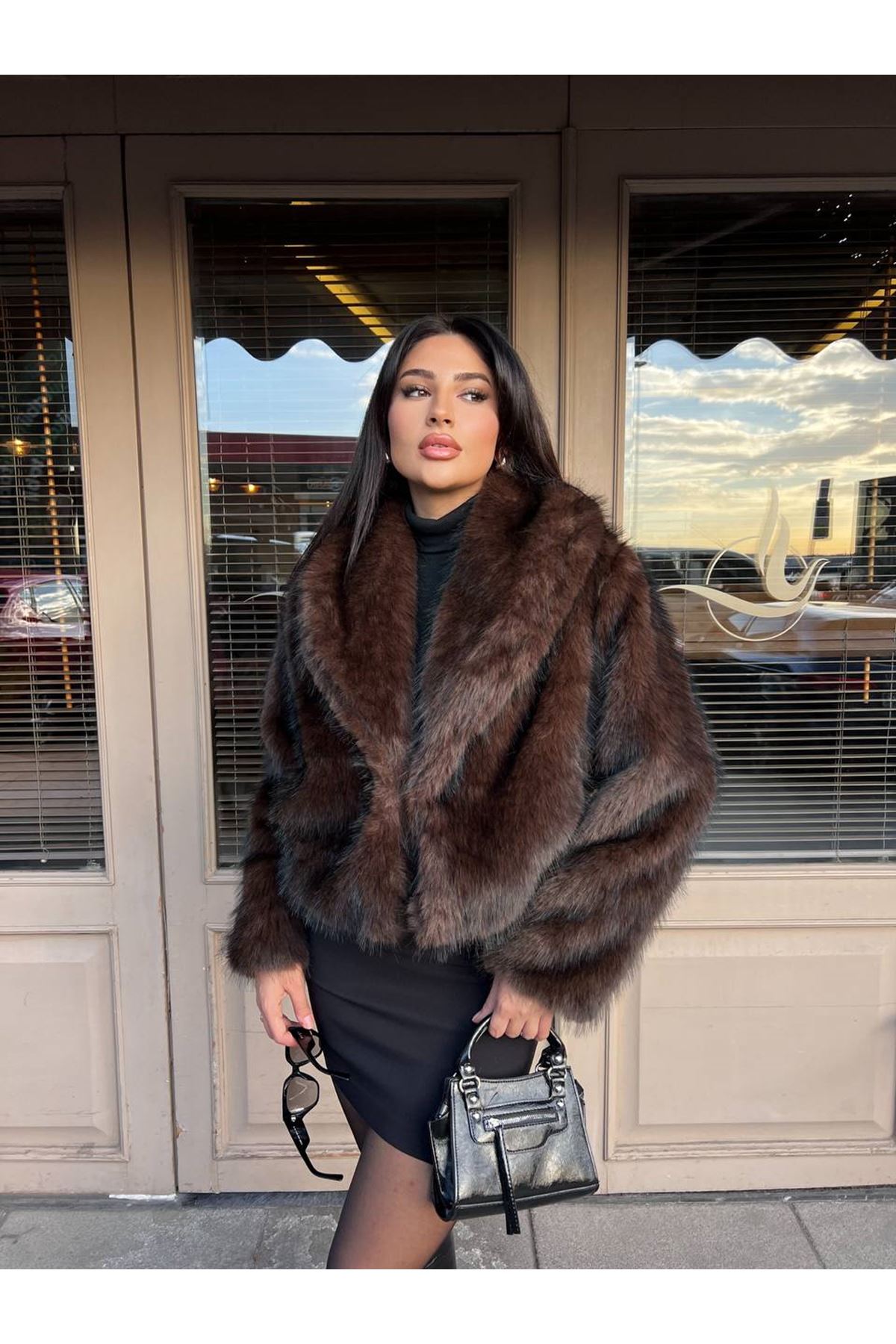 Yumuşacık dokusuyla dikkat çeken bu kısa peluş mont, hem zarif hem cesur bir tarz sunar.