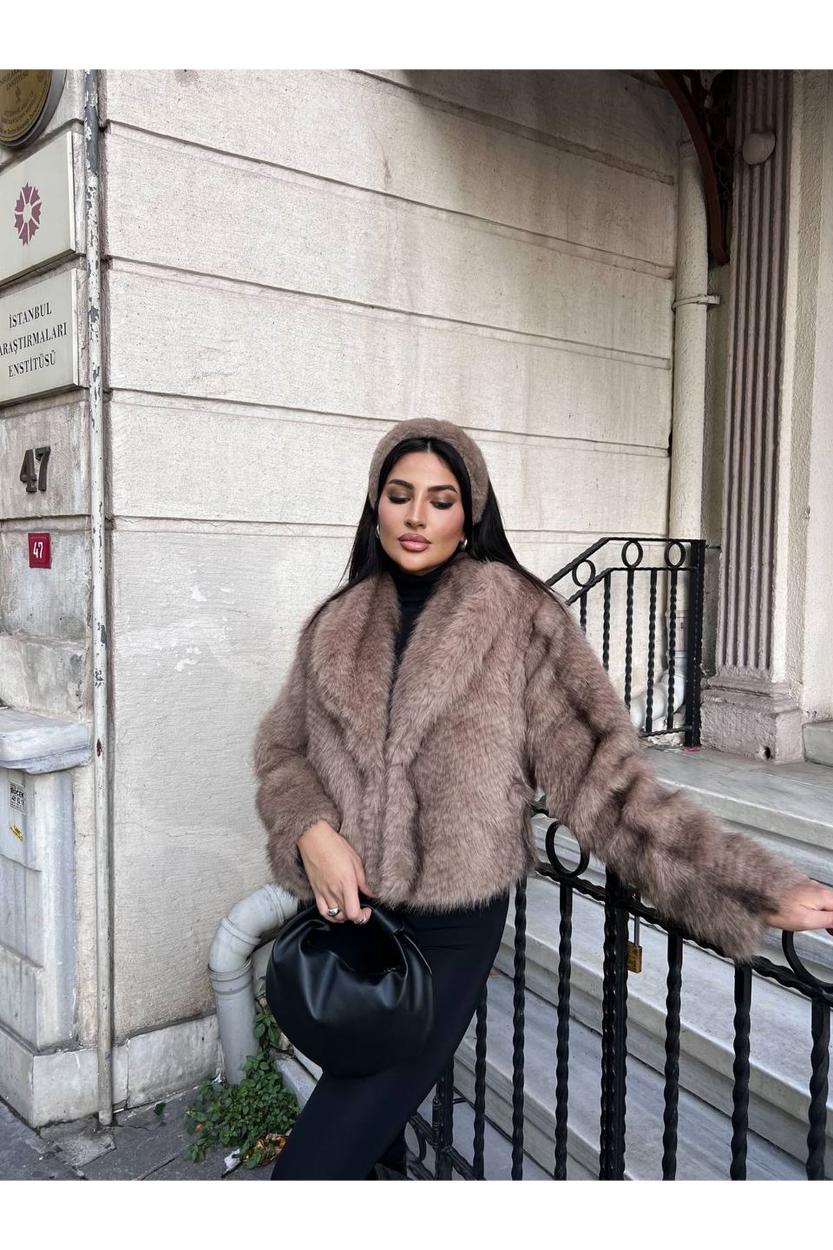 Yumuşacık dokusuyla dikkat çeken bu kısa peluş mont, hem zarif hem cesur bir tarz sunar.