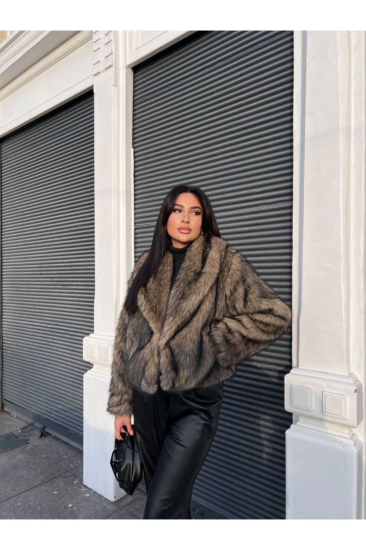 Yumuşacık dokusuyla dikkat çeken bu kısa peluş mont, hem zarif hem cesur bir tarz sunar.