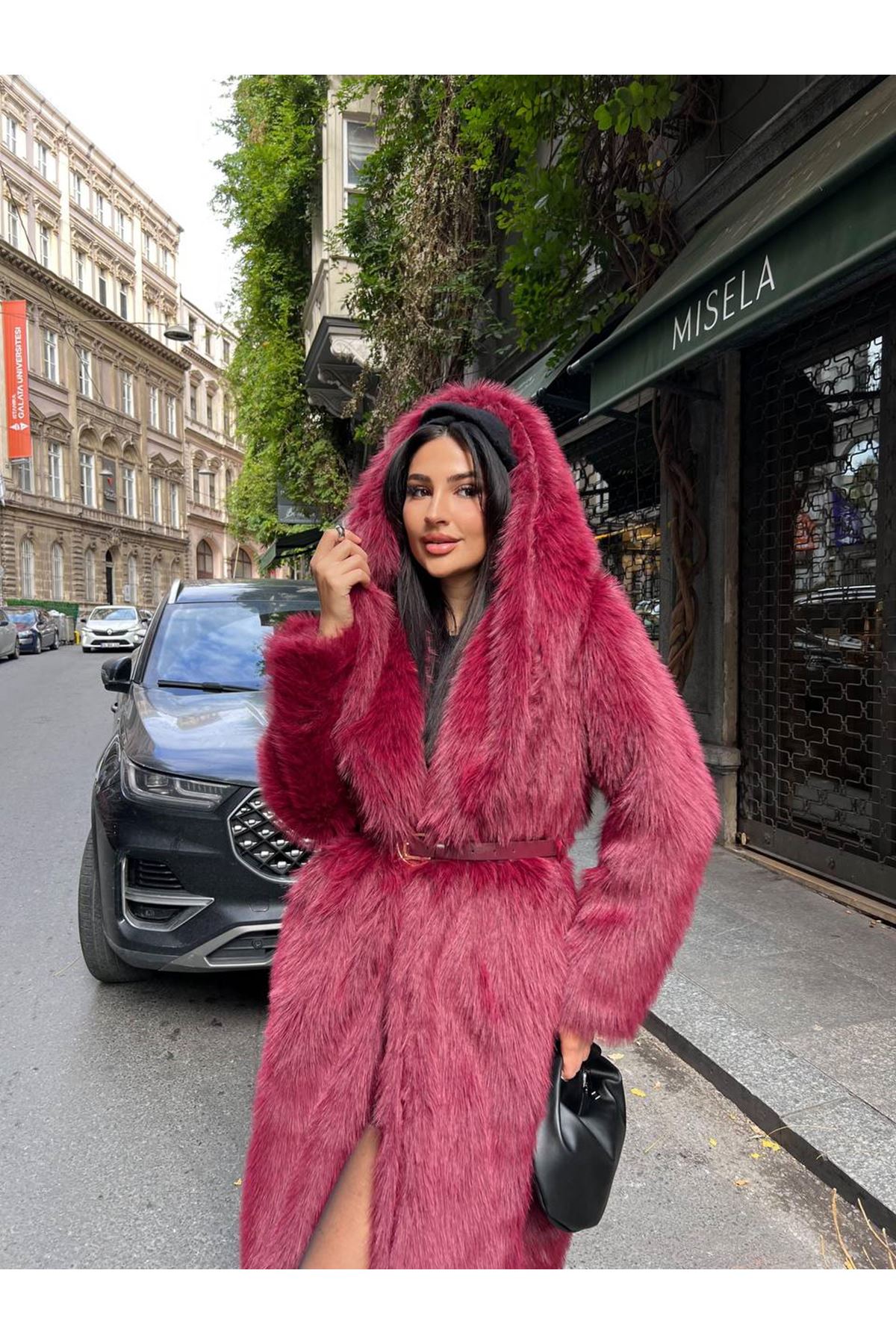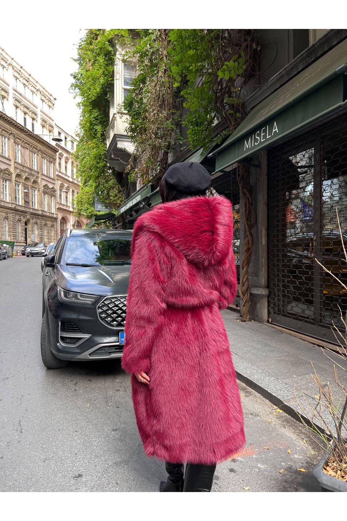 Lüks dokulu kapüşonlu suni kürk kaban, zarafeti ve sıcaklığı bir arada sunarak kış stilini bambaşka bir seviyeye taşıyor.